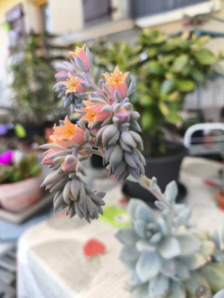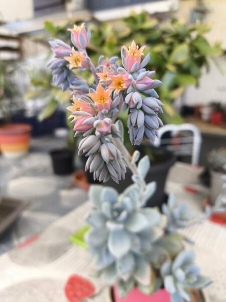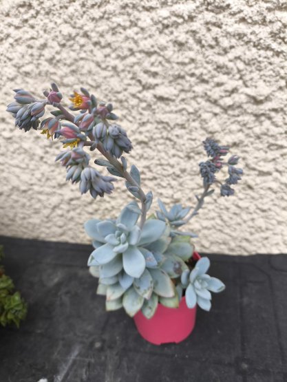 Pachyveria Powder Puff est venu grossir ma collection en janvier 2025. Les premières fleurs sont apparues début Aout et se renouvellent encore fin octobre.