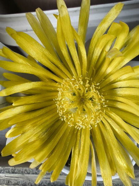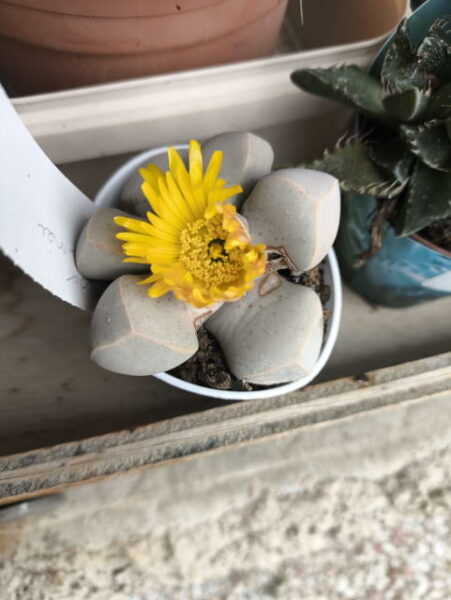 Lapidaria margaretae fait partie des Aizoaceae. Ses feuilles sont de couleur crème, opposées deux à deux, épaisses. Lapidaria margaretae atteint 6 à 8 cm. La fleur jaune est grande et cache presque totalement la plante.Elle résiste au froid jusqu’à -2°au sec.