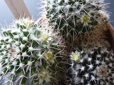 Alors que l’année 2016 ne verra pas ce mammillaria fleurir ,c’est au mois d’octobre 2017 que je découvre enfin de nouveaux boutons. Rentré dans la maison ce mammillaria a fini par fleurir sur ses 3 têtes. Une floraison bien tardive mais qui fut un ravissement.²