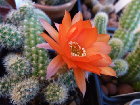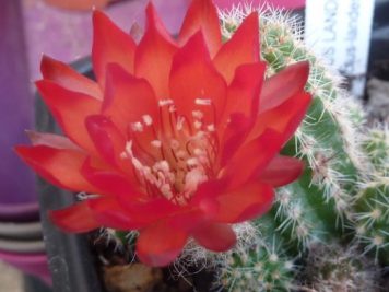 Chamaelobivia Burning Ice a agrandi ma collection en mai 2019. Les pétales longs et pointus sont rose flamboyant. Il commence à fleurir dès juin 2021.