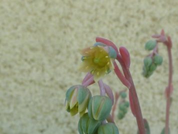 X Pachysedum Frontignan fait partie des Crassulaceae rustiques qui fleurissent au printemps. Ma plante est à la maison depuis l’hiver 2017 et fleurit enfin mi-mai 2020. Entre temps elle aura fait de nombreux rejets qui remplissent le pot.